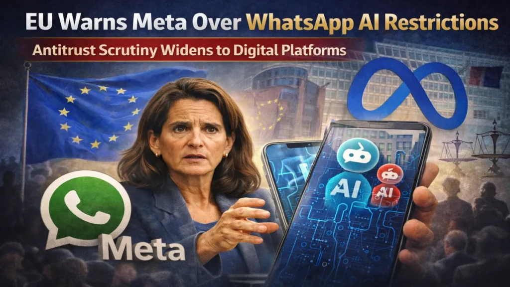 EU competition chief Teresa Ribera warns Meta over WhatsApp policies that block rival AI chatbots, signaling tougher antitrust enforcement across AI, big tech, and global markets.