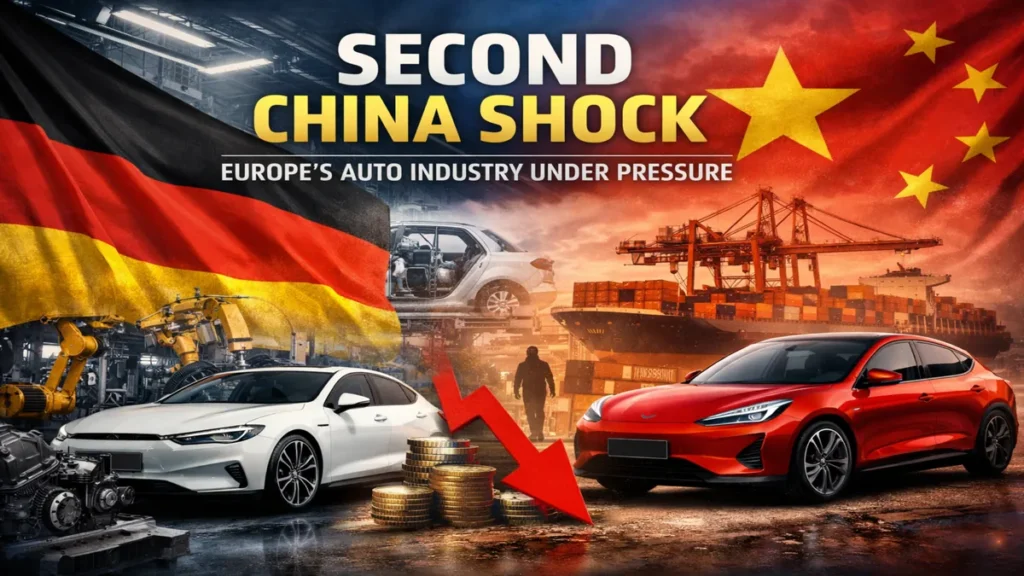Europe may be entering a defining economic moment often described as the “Second China Shock”—a wave of competitive pressure driven by China’s rapidly evolving export machine. Much like the first China shock that reshaped American manufacturing in the early 2000s, this new phase is now hitting Europe, with Germany’s auto industry at the epicenter.