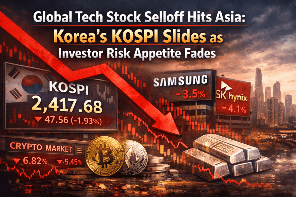 According to the video, the downturn has hit Asia hard, with South Korea’s KOSPI emerging as a key pressure point. Losses in the index signal that the earlier shift away from AI software stocks toward hardware-focused plays may not be as resilient as many investors believed.